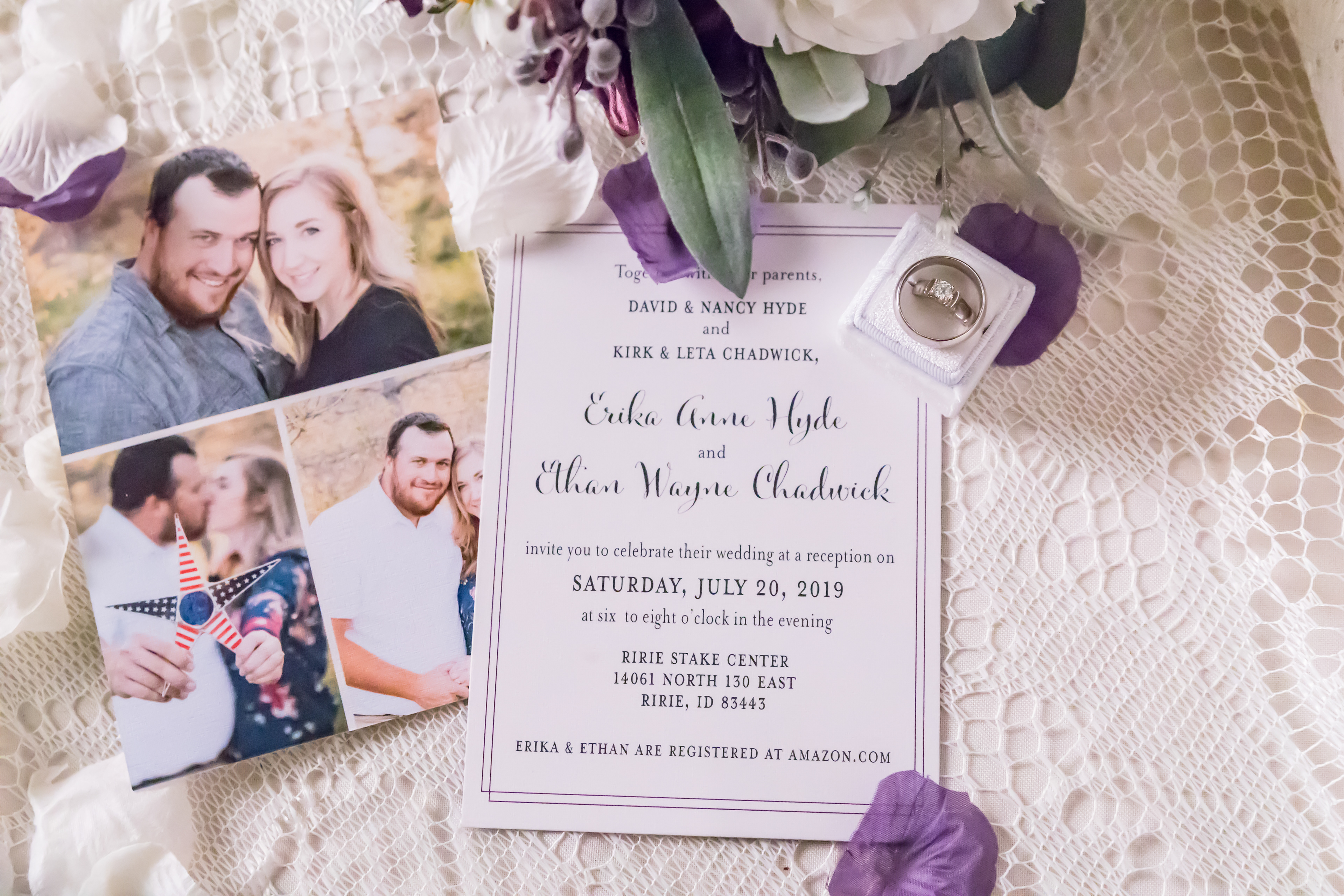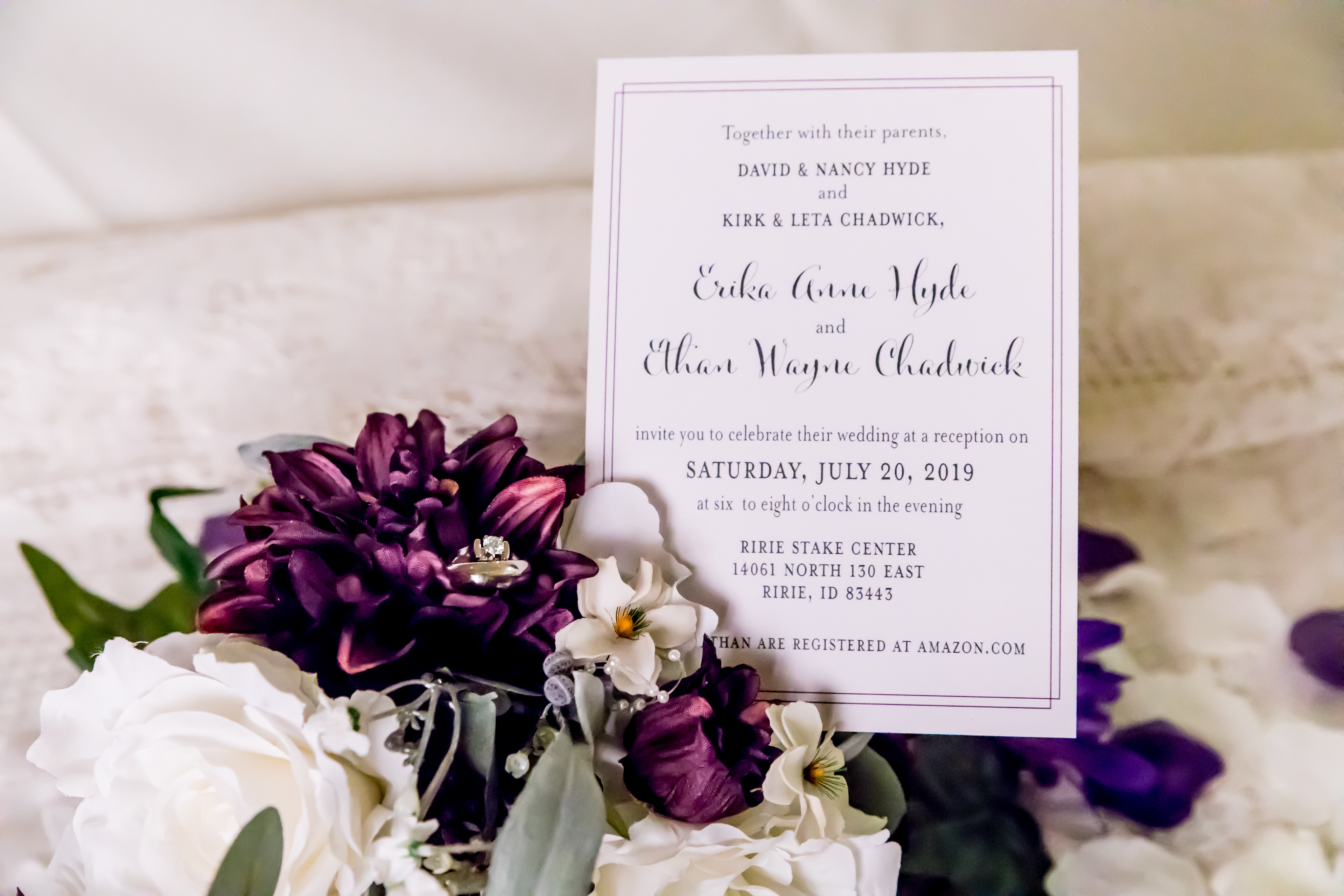 Double-sided simple wedding announcement with thin plum border